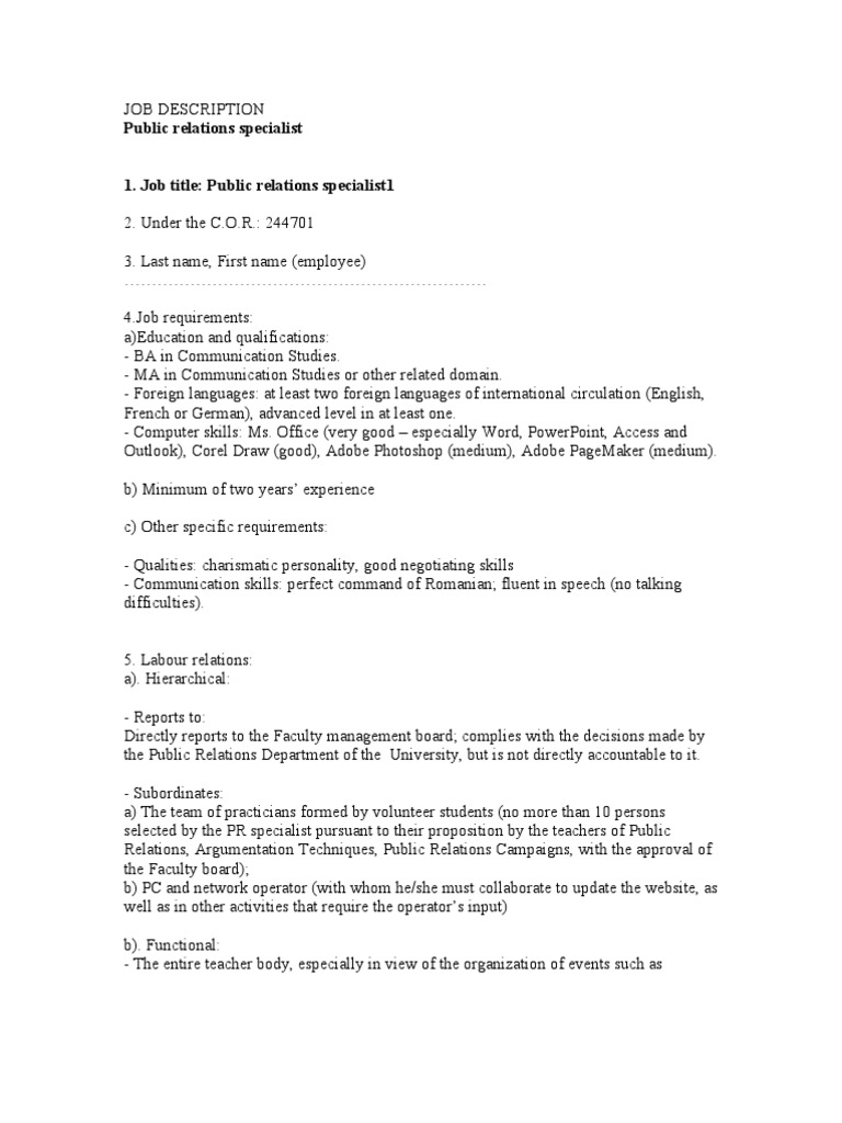 They need to be able to cultivate friendly relations with others, especially those outside of the organization, to promote the company's positive image. The public relations specialist's primary role is coordinating companies' relationship with the public, protecting their client's reputation, and putting a human face on companies and agencies that can seem. Most professionals working in this role do not hold an advanced degree. How to become a public relations specialist public relations specialists typically need a bachelor's degree. To have a successful career as a pr specialist, forbes provides the following guidance: